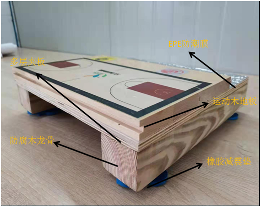 紧接着邵总到场,有道是千军大业一壶茶,我边泡茶边介绍到:我司成立16年,专门承接学校各类地板装修工程,并一个介绍了东莞已完工的案例(麻涌大步小学、大朗一中、崇文小学等代表性案例)。然后带邵总参观了公司展厅并详细说明了使用场景和用材。邵总是总包方采购负责人,你来我往的沟通气氛十分融洽,对我司的态度和专业都十分认可。接着继续拿着运动木地板的整体样板,详细讲到我们的施工工艺还有施工时间,为下一步的项目落实做铺垫。立美运动木地板结构如下图: