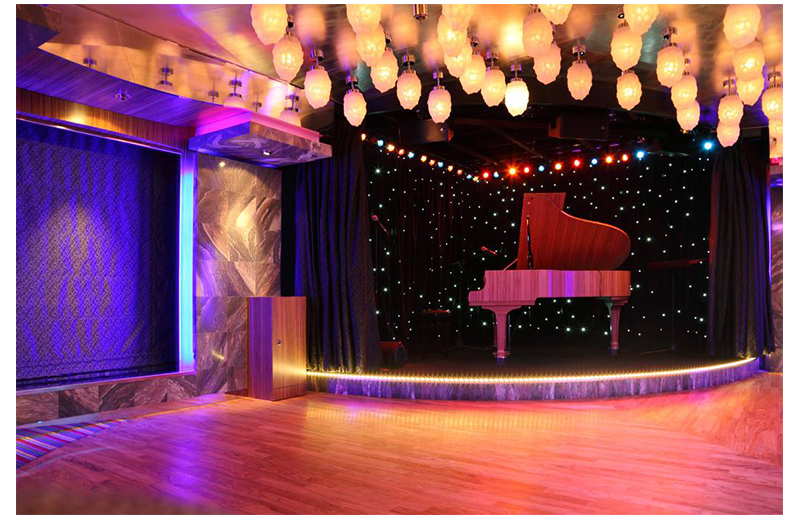 4、对于舞厅舞台排练来说,使用舞台运动木地板也是未来的大趋势,不但大幅提升整个舞台舞厅场所的档次感,还能提升舞台运动木地板在后期使用的视觉感,与相关配套的设备和设施相结合,给观者以高品质、的装修风格,从而提升场馆的度。